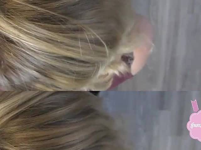 This Babe brushes her hair and gives him a hairjob. That Guy cums on her hair - Taylor and Lisa
