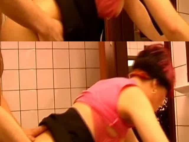 Amateur German Pink Haired Teen Fucked in Bathroom