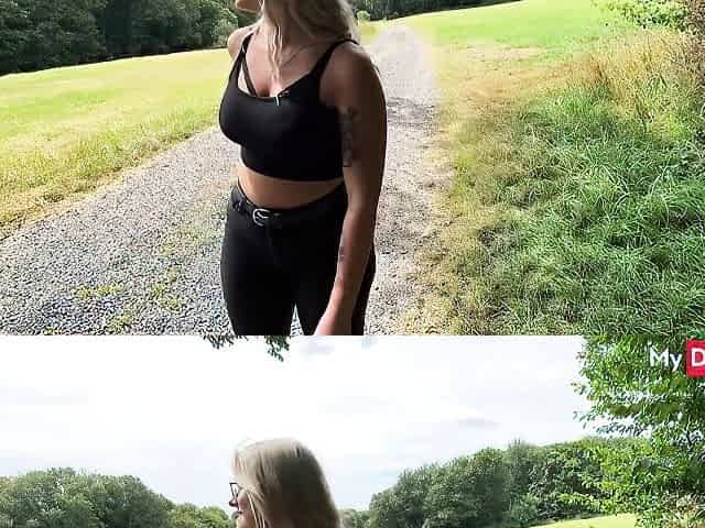 german big tits tattoo model seduced on street for blind date pick up