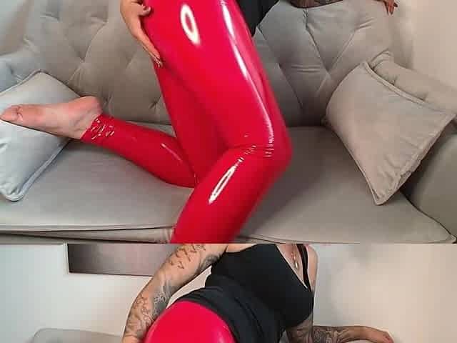 rote leder leggins fetisch