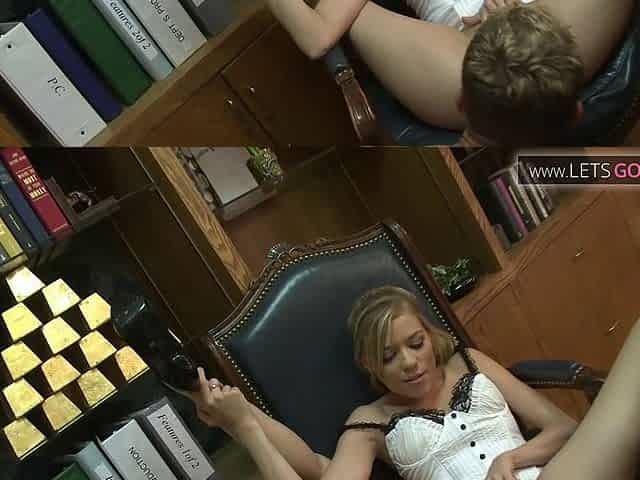 Blonde cougar trades cock sucking for pussy licking with a young hunk