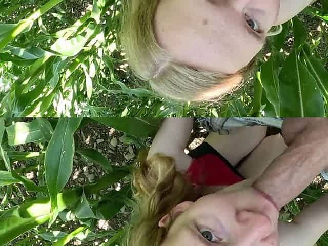Bargain blonde teen slut Bikergirl_97 gets plowed and covered in cum in a cornfield