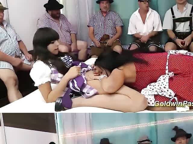 Gemischter Dreier Mit Zwei Spermageilen Heissen Braeuten