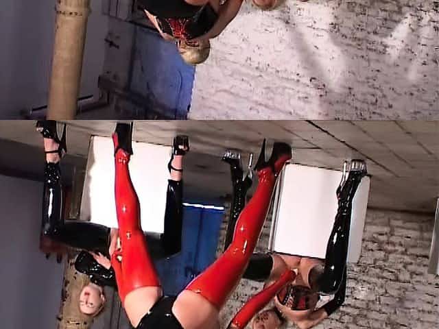 Latex loving Sandra and Asta are in a threesome getting banged and eating cum