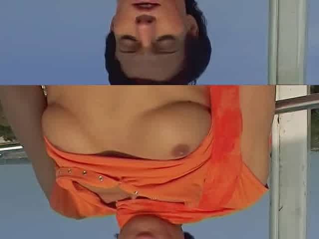 Wild German chick showing off her shaved pussy in public