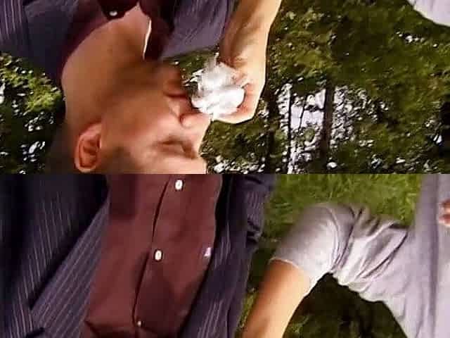 Double penetrated slut gets cum in mouth in vintage threesome