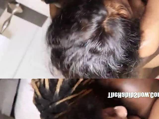 Super petite ebony 20yo gal sucks a huge ebony weenie! - black porn