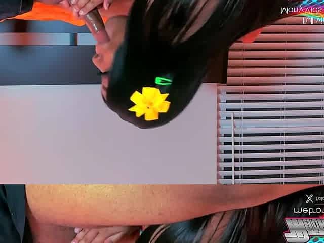 Sexy slender Boricualovenyc in cosplay bra and panties gives an amazing deep throat blowjob