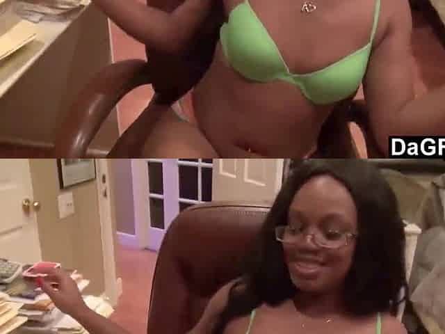 Bouncing her charming ebony booty on her stepdad's giant monster knob