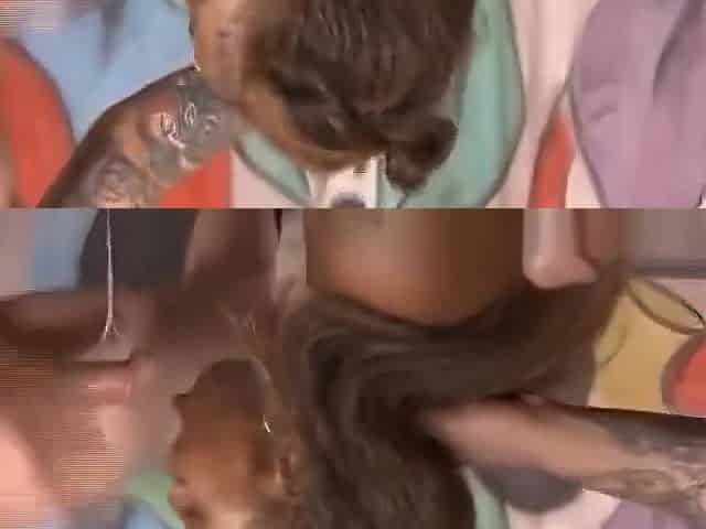 Wigged Black Ghetto Slut On Dick During Face Fuck