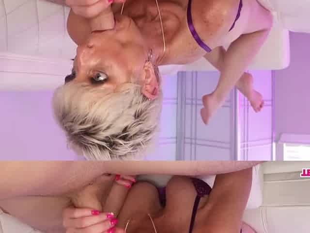 Stunningly beautiful blue eyed cutie blowjob and facial