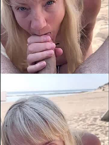 Beach outdoor hot blonde cougar blowjob