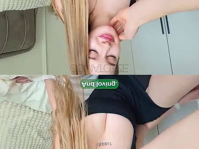 StrapOn Lesbian with big boobs fucks her blonde sexy GF