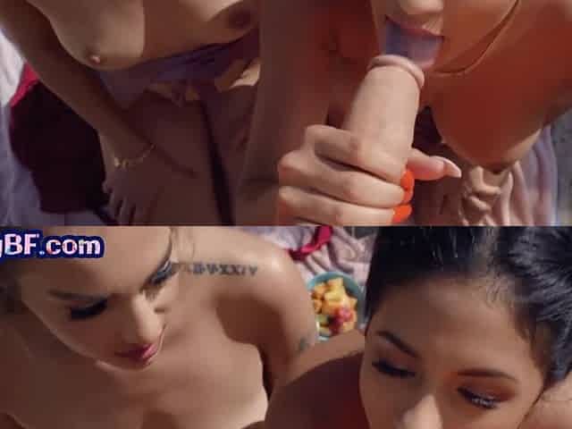 Eva Angelina blowbang contest Asian girlfriend Keeani Lei swallow