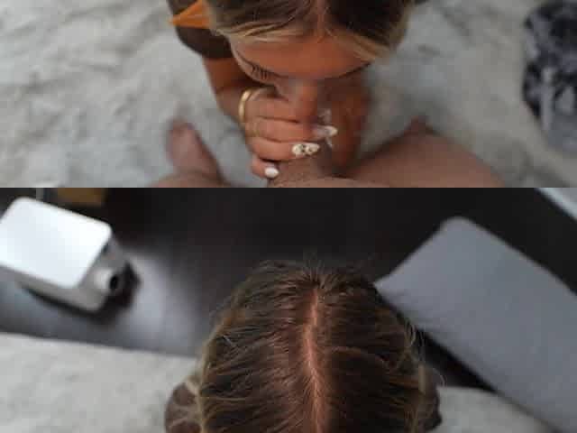 My lover a naughty platinum blonde girlfriend jumps on a big cock with her pussy and gives blowjob