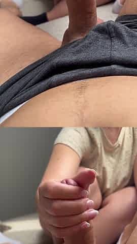 Post workout with playgirl from gym ended in tugjob and cum whilst GF is away