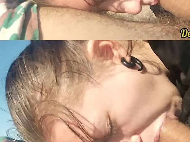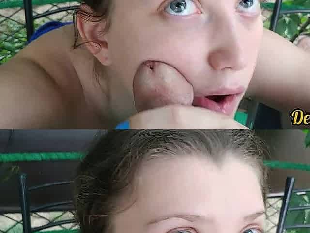 хороший миньет в лесу от милой девушки залил тёплой спермой любимое лицо
