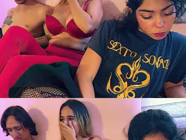 Stepsister and Girlfriend Threesome! Amateur Teen Creampie