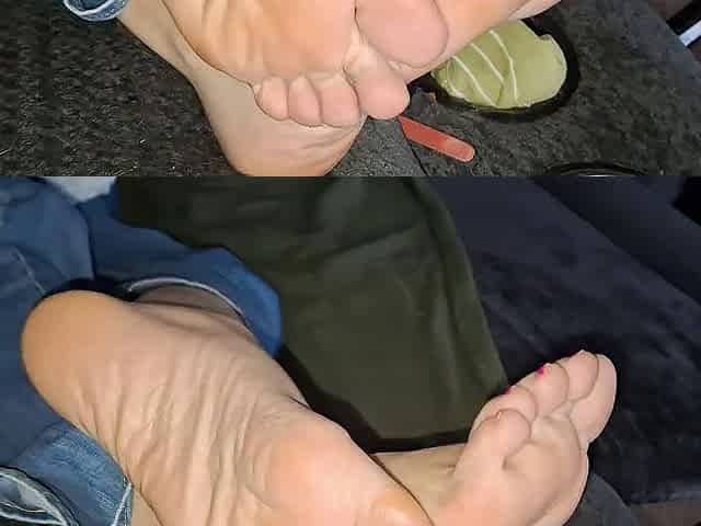 Masturbating my hard cock while I look at my girlfriends sweet feet