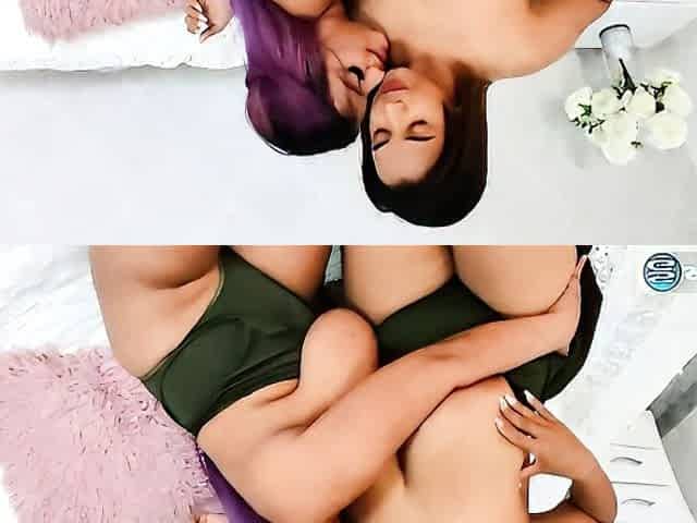 BBW girlfriend Angie Bravo is kissing her girlfriend's nipples