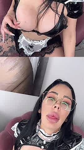 BustyGinaInHerPvc/LatexNaughtyMaidOutfitSmoking