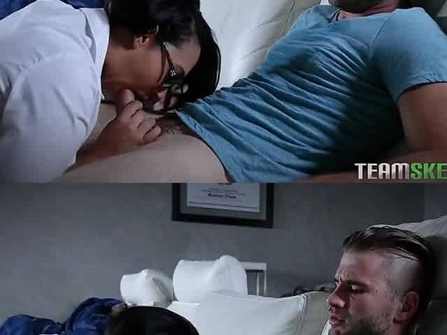 Lusty Coed With Glasses Delivers A Nice Bj And Gets Pleasantly Fucked With Emori Pleezer And Nathan Bronson