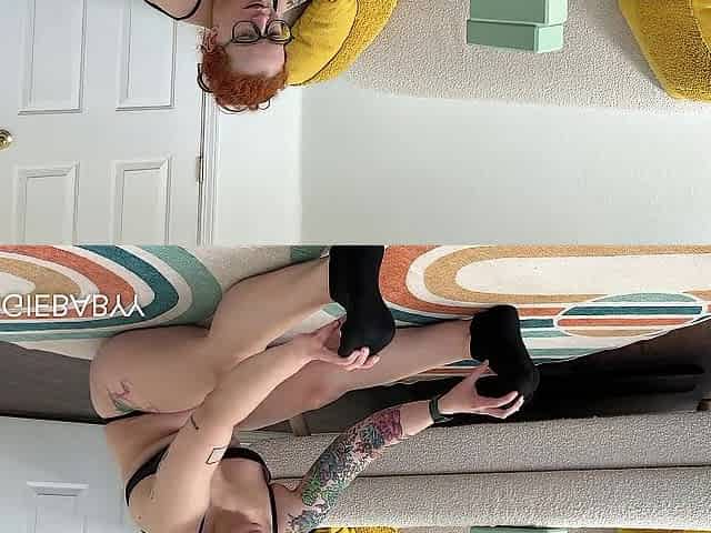 supple redhead shows off fresh tattoo in brassiere and pants - veggiebabyy