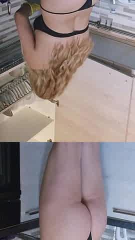 Naughty Girl in the Kitchen Likes Lingerie
