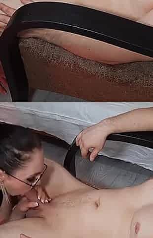 Big tit mylf boss catches her nanny getting her cunt licked by her bf on her sofa