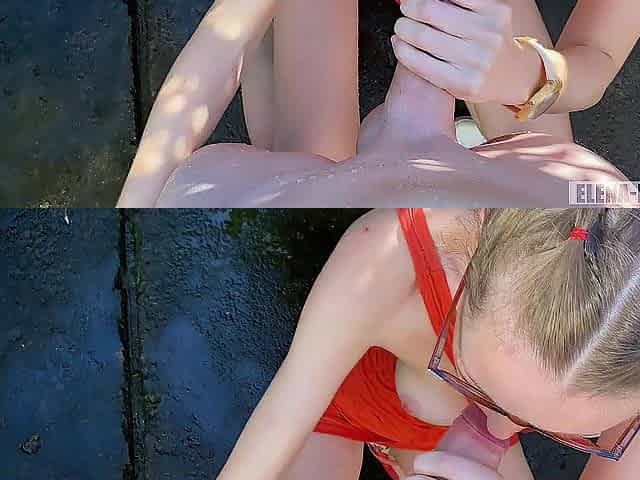 Blonde MILF Blowjob and Sunglasses with Huge Throatpie