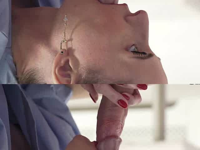 Beautiful woman with glasses giving a blowjob and fucking in missionary position.