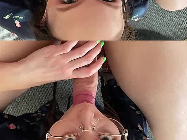 Massive boobed glasses wearing cock sucking redhead