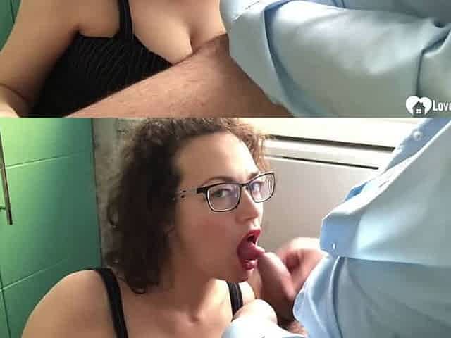 Beautiful woman with glasses gives great blow job and hand job