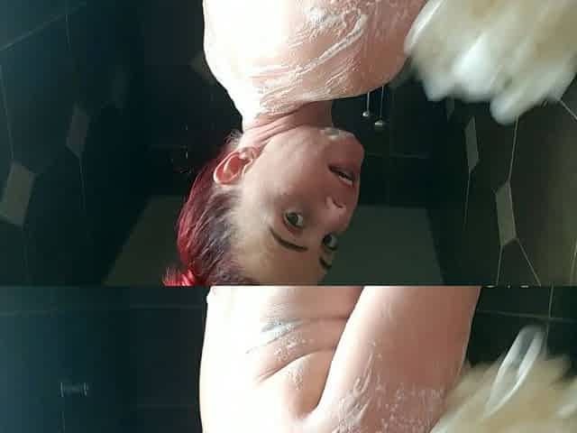 Amateur redhead Jacqueline with glasses masturbates