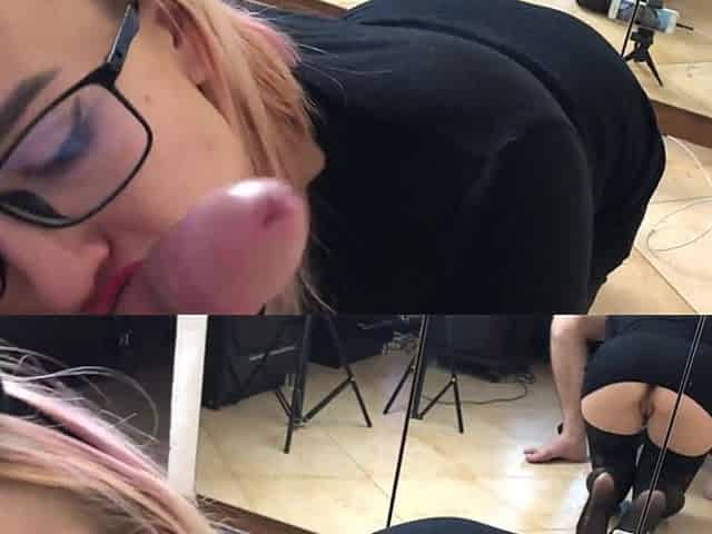 Cute blonde in glasses deepthroating