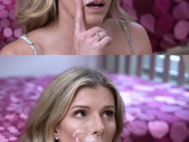 Pretty girl with glasses gets a facial in a threesome