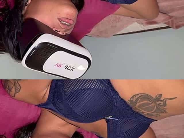 Stepdaughter with her virtual reality glasses: Mom and Dad have sex on top of her.