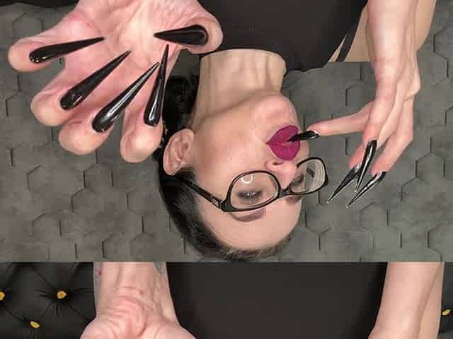 Black Long Nails, Sharp Stilettos, Long Fingers Sucking and Hands Worship, Palms Wide