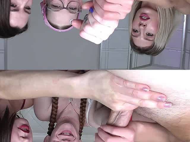 threesome CFNM femdoms give amateur HJ untill ejaculation ending