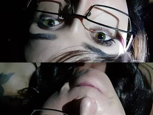 Bespectacled Bitch Cums From Licking Pussy.