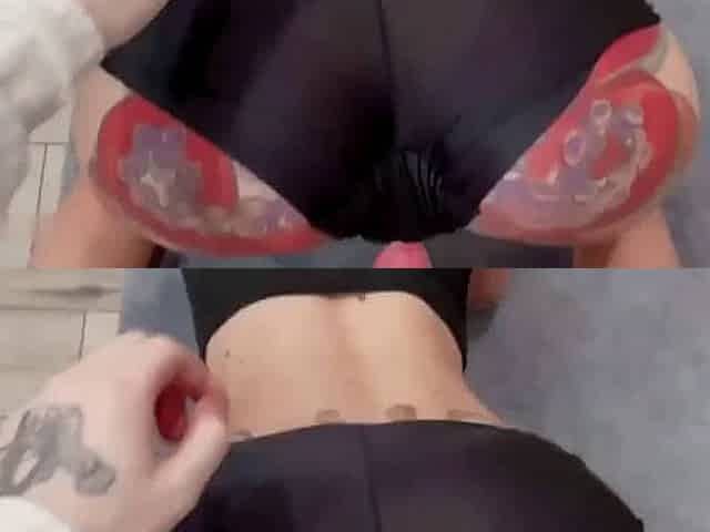 Tattooed Kitten with natural tits fingering her love tube