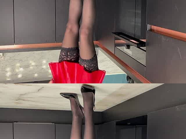 Mini Skirt, No Panties or Pantyless Mini Skirt, Black Stockings and High Heels