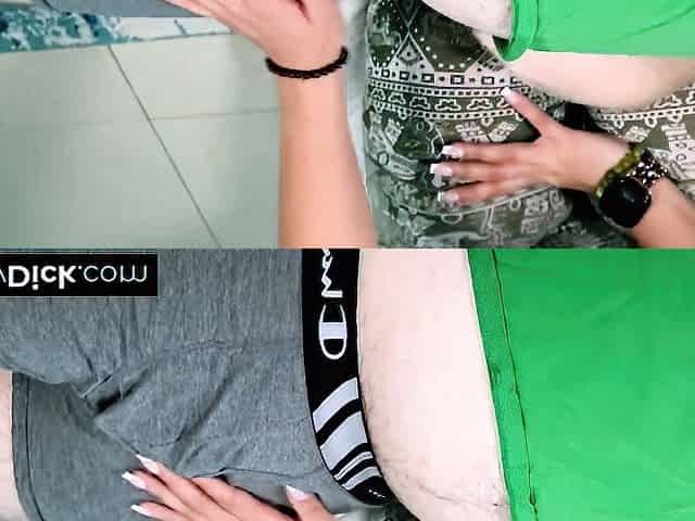 Brunette girlfriend with big natural tits sucking a penis