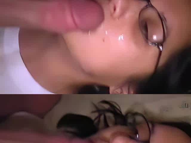 Hot teen with glasses get facial after hard anal pounding li