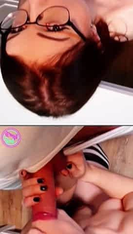 POV Blonde Glasses Slut Sucks Dildo & Begs Cum