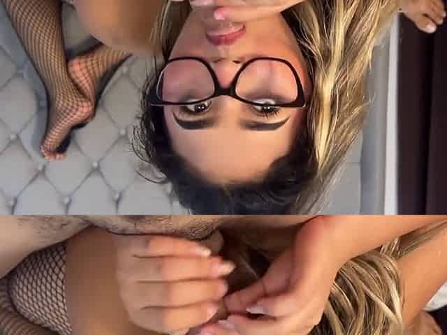Slutty Nerdy Babe Gives Sloppy Blowjob