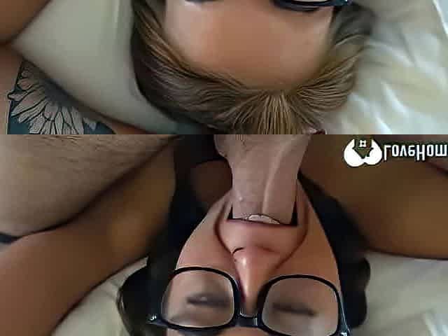 Teen hottie with glasses sucks my shaft dry