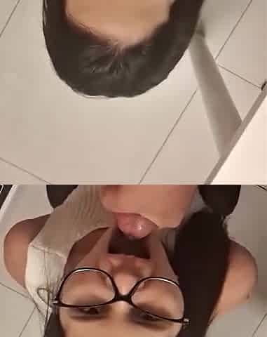 Nerdy gal in glasses gives her tiny jock ally a pity fellatio