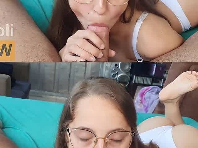 Russian Amateur Babe in Glasses Gives a Blowjob