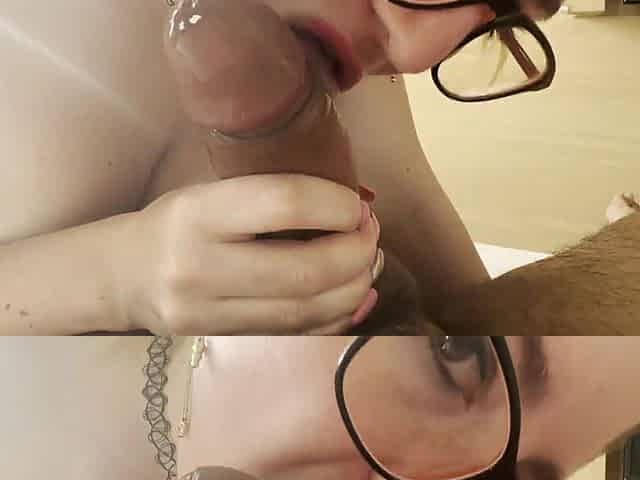 Sexy Girl with Glasses Swallows a Big Cock and Gives the Best Wet Blowjob